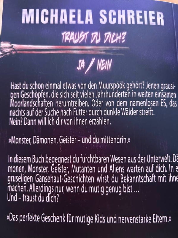 Hast du schon einmal etwas von den Muurspöök gehört? Jenen grausigen Geschöpfen, die sich seit vielen Jahrhunderten in weiten einsamen Moorlandschaften herumtreiben. Oder von dem namenlosen ES, das nachts auf der Suche nach Futter durch dunkle Wälder streift.