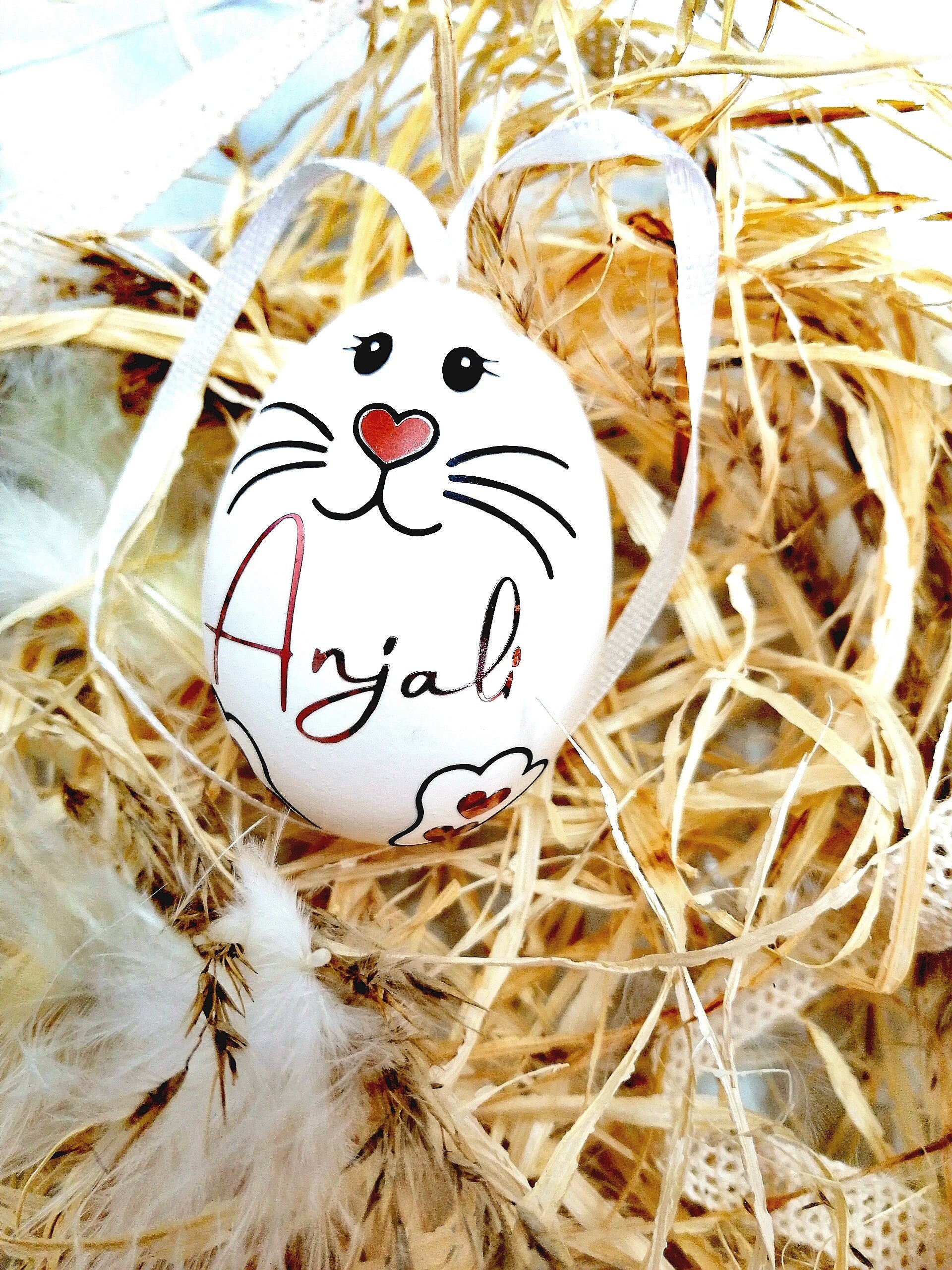 - Mit Eurem Namen oder auch Wunschwort verziere ich Euch die Natureier. Ihr müsst euch nur entscheiden ob das Ei hängen oder liegen darf.
