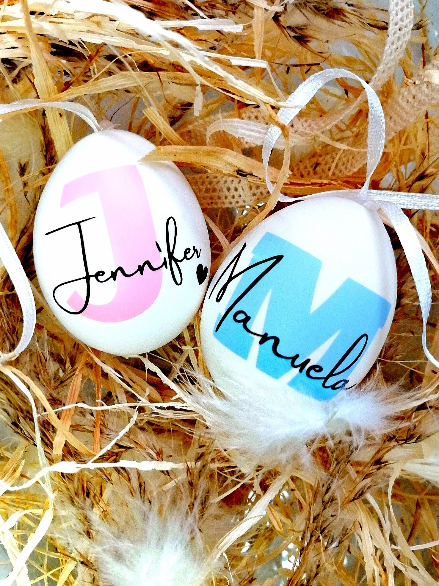 - Mit Eurem Namen oder auch Wunschwort verziere ich Euch die Natureier. Ihr müsst euch nur entscheiden ob das Ei hängen oder liegen darf.
