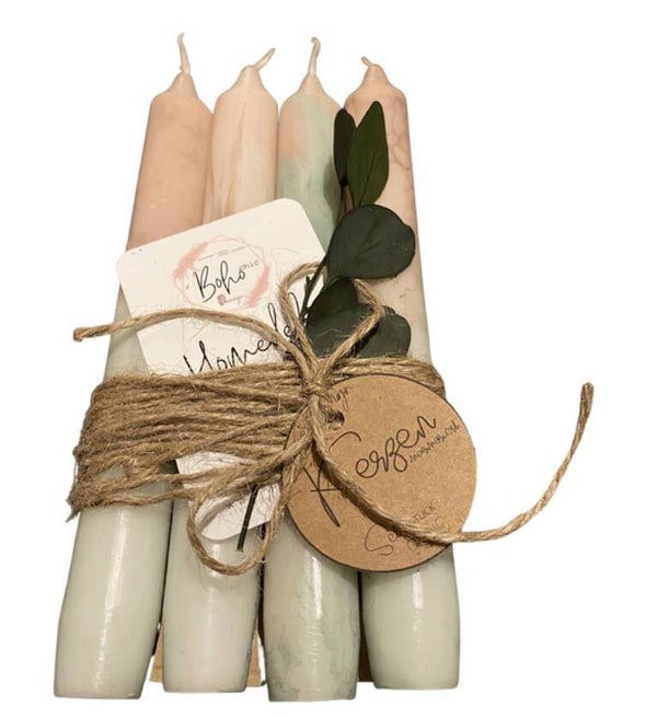 - Set aus 4 Stabkerzen Pastellis 2 farbig Marmoriert im BohoChic Style