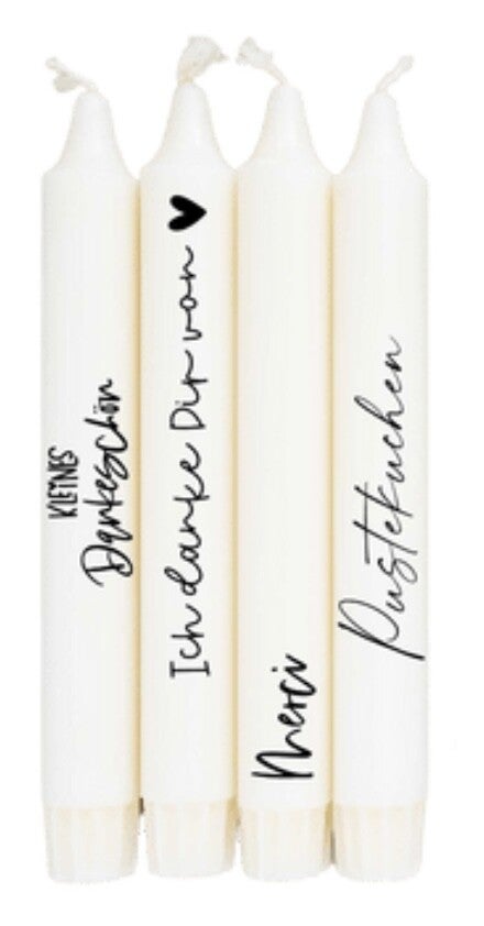 Der Aufdruck der Kerzen ist frei wählbar und kann individuell nach Wunsch angepasst werden. Schreibe deine Wünsche dazu einfach in die Anmerkung.